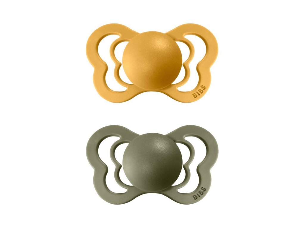BIBS Couture Dudlíky z přírodního kaučuku vel. 1 Honey Bee/Olive, 2ks